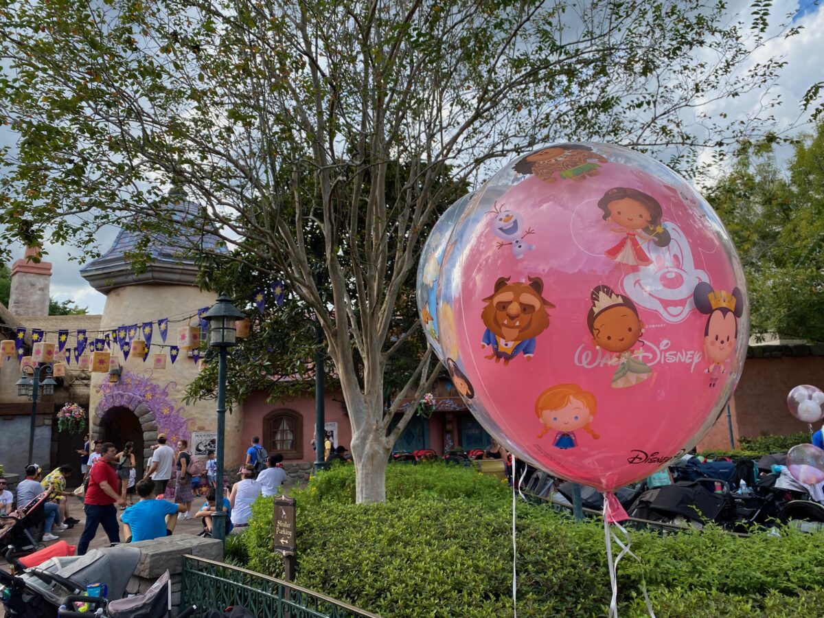 Inside the parks, balloons aren’t permitted on attractions, so you’ll be securing it outside the ride queue each time. The move that actually works is tying the ribbon to a stroller or bag rather than a wrist — it floats behind you out of everyone’s way and you barely have to think about it until you hit a ride.