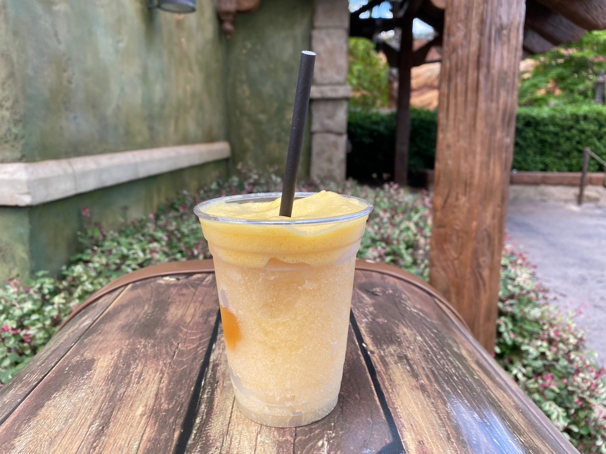 Here’s our honest take: LeFou’s Brew can go head to head with any frozen drink on Disney property, including the Dole Whip. It’s on the Mount Rushmore of non-alcoholic drinks Disney has ever created. That’s not a mild endorsement — that’s a ranking we’d defend in front of anyone. The combination of the apple base, the marshmallow sweetness, and that tart passion fruit-mango foam on top works in a way that shouldn’t make sense on paper but absolutely does in practice.